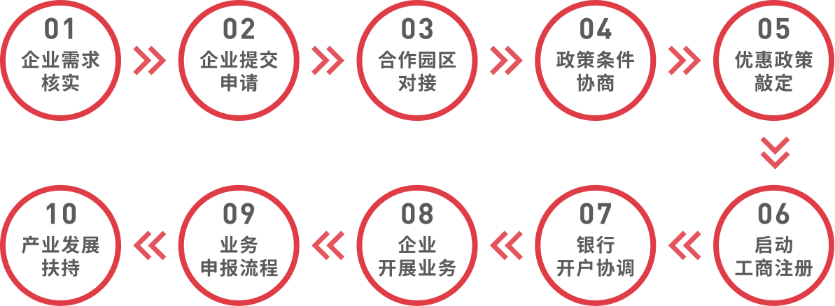 园区为企业提供“保姆式”落户服务,线上企业操作+线下园区代办。