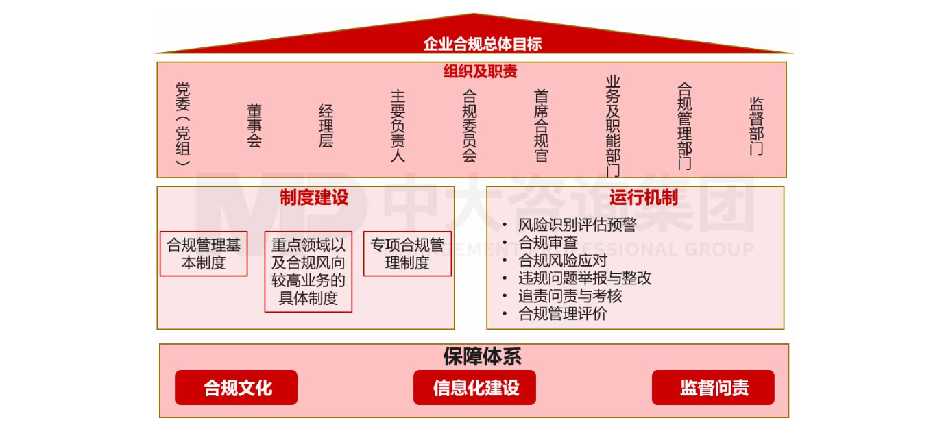 以企业合规风险为管理对象,识别企业合规关键领域及其合规风险,建立完善的合规管理组织、制度与程序,包括合规审查、问题整改、合规举报、合规报告等,并通过法治宣传教育、合规培训等方式,健全企业合规文化